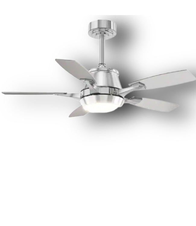 Good condition in box. Siljoy Chrome Ceiling Fan With Light And Remote 42". Modern low profile. App compatible. DC motor. Dimmable. 6 speeds. 5 blade. Indoor. LED. Recommended for 250 sq. ft. room. Dimensions: 42" diameter.