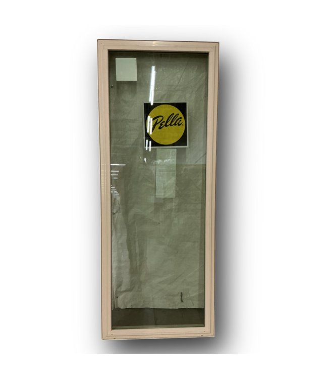 In good condition. Pella Almond Vinyl Fixed Window. 250 series. Fixed frame/Special shape. Annealed. One wide. Low-E 366/i89. High altitude with argon gas. Dimensions: 23.375"W x 59.5"H.