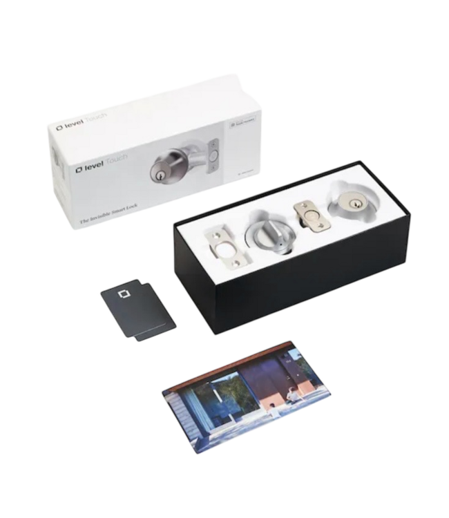 Good condition. Level Touch Edition Smart Lock Satin Chrome Deadbolt Lock. Small and discreet. Work with Apple, Android and Alexa. Designed to replace your existing deadbolt lock. Includes all hardware. Download the app or use provided key cards.
