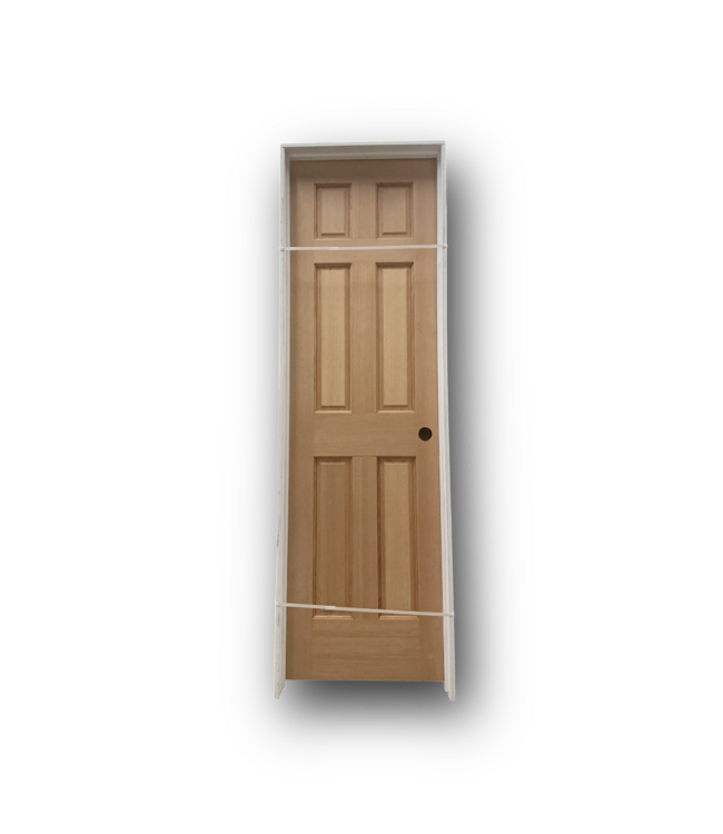 Good condition. Left hand inswing. Cedar wood. 6-raised panels. Prehung ready easy to install. Solid core. Unfinished can be stained or painted. Dimensions: 23.75"W x 1.375"T x 80"H. W/Frame: 25.1875"W x 4.5"T x 82"H.