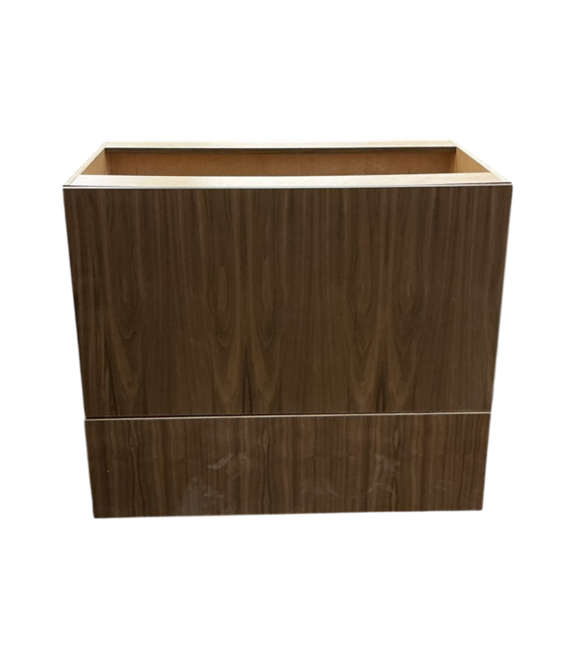 Good condition. Dark Chestnut Sink Base 36"W. No doors flat front. Sleek appearance. Soft close drawer at the bottom. Full extension drawer glides. Perfect for a kitchen sink or an island. Dimensions: 36"W x 24"W x 34.5"H.
