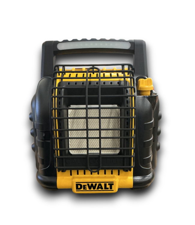 Good condition in box. Dewalt Cordless 12000-BTU Radiant Propane Heater. Portable. Outdoor. Variable heat settings. Electric ignition. 3 USB ports, high speed fan, LED light bar. 1 AAA battery included. Dimensions: 17.5"W x 10.5"D x 17"H.