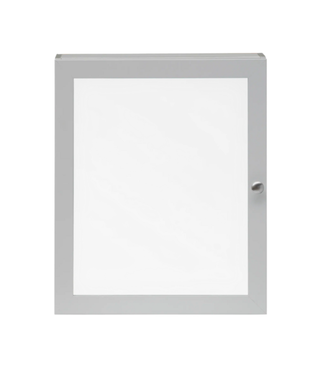 Good condition in box. Style Selections Mirrored Rectangle Medicine Cabinet. Gray finish with satin nickel hardware. 2 adjustable storage shelves. Surface mount. Fully assembled. Dimensions: 19.5"W x 4.5"D x 23.7"H.