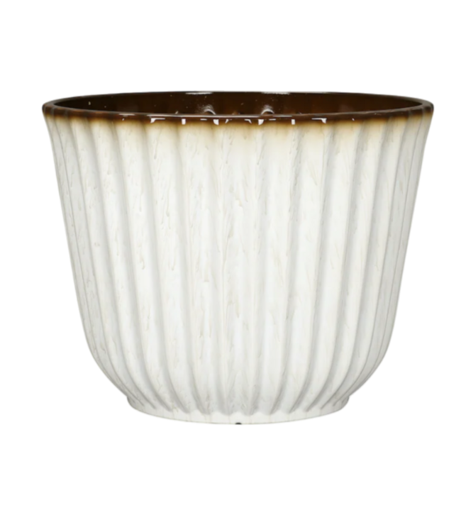In good condition. Style Selections Large Round White Plastic Indoor/Outdoor Planter. Jolie series. Knockout drainage holes. Lightweight and durable. Residential. Made from recycled plastic. Dimensions: 16.34"W x 16.34"L x 13.58"H.