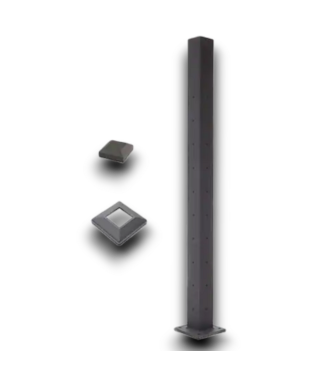 Good condition in box. Deckorators Textured Black Aluminum Deck Corner Post. For decking, porches, deck stairs. Powder coated. 1 post, 1 post cap, 1 post base trim included. Dimensions: 2.5"W x 2.5"D x 3.66'H.