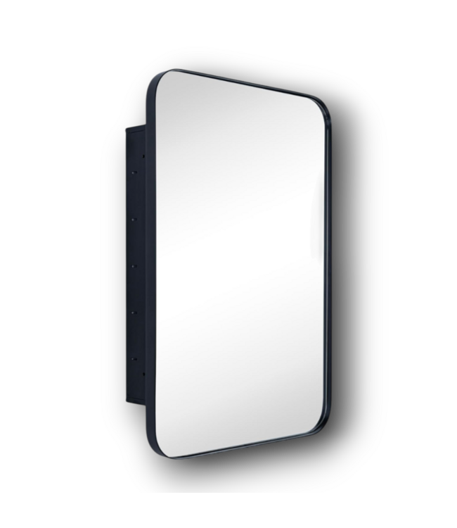 Good condition like new. EGHome Recessed Mirrored Medicine Cabinet. Matte black finish with rounded corners. Stainless steel. 2 adjustable tempered glass shelves. Magnetic door. Mounting hardware included. Dimensions: 16"W x 4.96"D x 24"H.