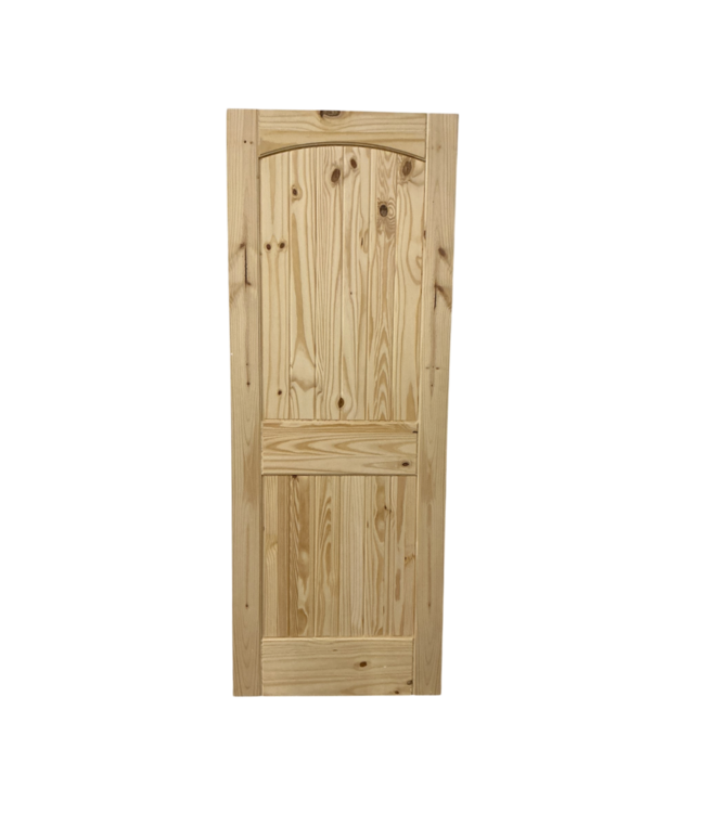 Good condition like new. EightDoors Natural Pine 2-Panel Interior Slab Door. Priced at $273 elsewhere. Arch top with straight v-groove lines. Solid core. No bore. FSC certified. Dimensions: 30"W x 1-3/8"D x 80"H.