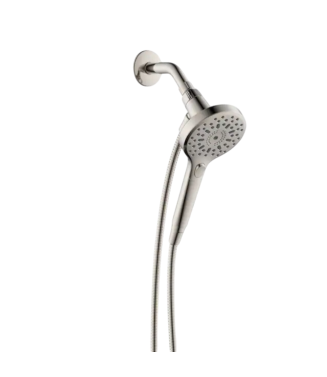 Good condition in box. Allen+Roth Loxley collection. 3-spray settings, full spray, pulse, hair rinse. Magnetic docking. Dimensions: Shower head diameter:n 4.7" Hose length: 60". Easy to install.
