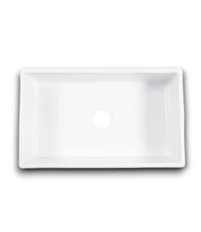 Good condition in box. Sinkology Turner Farmhouse Fireclay Single Bowl Kitchen Sink. White. 600+ degree heat resistant. Center drain. Smooth apron. Commercial/residential. Chip resistant. Dimensions: 18"W x 30"L x 8.5"D.