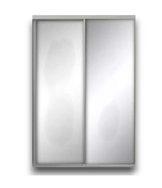 Good condition in package. Contractors Wardrobe Savoy White Mirrored Interior Sliding Closet Door. Steel frame. Hardware included. Reversible. 2 panel. Commercial/residential. Dimensions: 47"W x 1"T x 96"H.