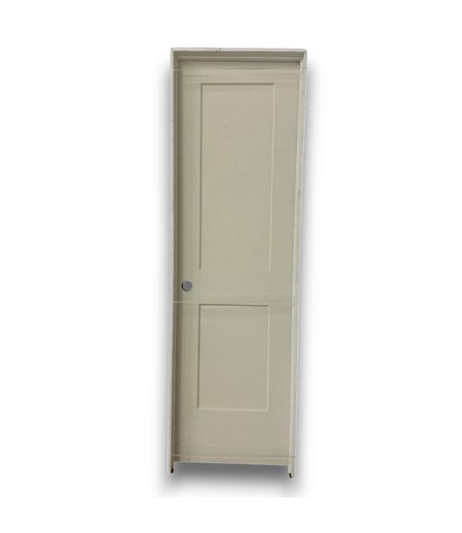In good condition. Primed Right Hand Prehung Interior. 2 recessed panels. Right hand inswing. Primed ready for paint. Hollow core. Without frame: 24"W x 1.375"T x 80"H. With frame: 25.5"W x 4.5"T x 81.5"H.