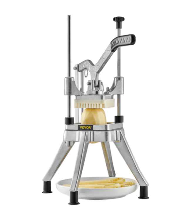 Good condition in box. Vevor vegetable slicer with 4-blades. Great for veggies & cheese. Aluminum alloy material, Silver color. Commercial/residential. Non-slip feet. Gloves included. Dimensions: 8.66"W x 8.66"D x 18.5"H.