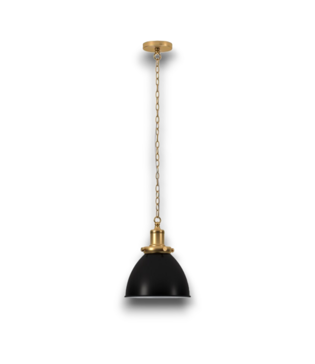Good condition. Hailey Home Elodie 1-Light Metal Dome Hanging Pendant Light. Priced at $142 elsewhere. Handcrafted blackened bronze/brass finish. Hardwired. Includes 6 ft chain & cord. Dimming compatible. Dimensions: 12"Diameter x 14.75"H.
