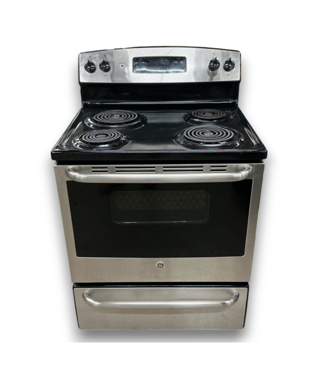 Used in good condition. 4-control knobs. 4-Coil burners. Blue enameled oven with adjustable racks. 1-pull out drawer for storage space. Dimensions: 30"W x 26"D x 45"H.