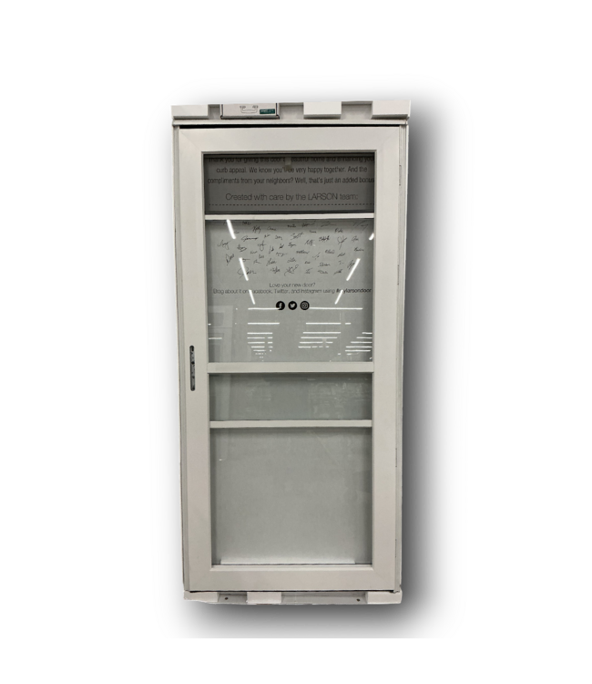 Good condition like new. Larson Platinum White Split Fullview Storm Door. Priced at $549 elsewhere. RH hinge. Aluminum door with retractable screen. Low-E, Tempered glass. 3x weatherstrip. Handle/hardware not included. Dimensions: 36"W x 1.5"D x 79.25"H.