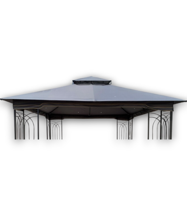 Good condition in package. Bayfeve collection. Replacement canopy only. Polyester fabric. UV protection, water resistant. Suitable for a 10' x 10' frame. Gray color. Dimensions: 117"W x 117"L x 33.5"H.