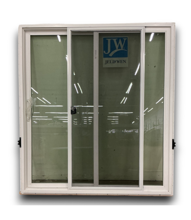 In good condition. Jeld-Wen White Vinyl Left Hand Sliding Patio Door. Handles and screen included. SunResist Low-E argon gas. Insulated core. Tempered clear glass. Dimensions: 71.5"W x 4.5"T x 79.5"H.