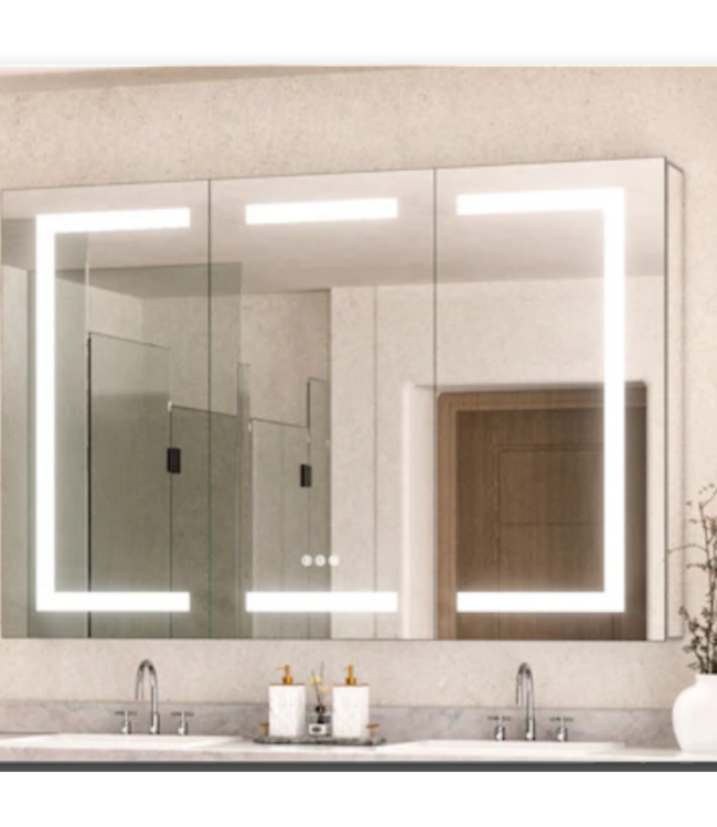 Good condition in box. Tetote Tri-View LED Anti-Fog Medicine Cabinet With Outlet. Priced over $1000 elsewhere. Touchscreen. Rectangle. Surface/recessed mount. 2 outlets and 2 USB ports. 3 color light. Dimensions: 48"W x 8"D x 32"H. 42.24"L power cord.