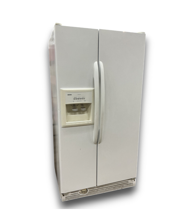 Used in good condition. Kenmore White French Door Refrigerator. External ice and water dispenser. Freezer- 4 wire shelves, 1 wire drawer, 3 door storage, space saver ice storage system. Dimensions: 345.75"W x 29.875"D with door x 68.75"H.