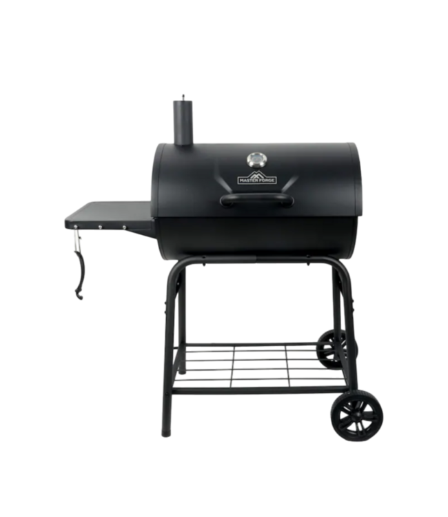 Used condition. Inside box. Master Forge Large Black Barrel Charcoal Grill. 545 Sq. inch Primary rack with 270 Sq. inch warming rack. High adjustable charcoal tray. Front access charcoal door. Slide out ash pan for easy clean up.