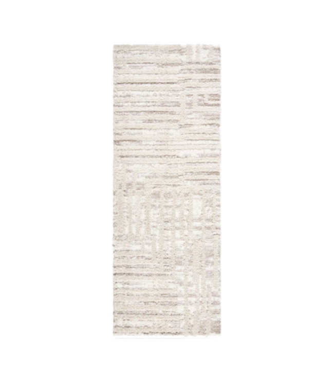 Good condition. Like new. Alabaster Stone 2' by 8' Loomed Polyester Neutral Rectangular Indoor Geometric Industrial Spot Clean Only Pet Friendly Runner Rug. Stain resistant for high traffic areas. Dimensions: 7.25'L x 2.58'W x 1.18"H. 7 LBS.