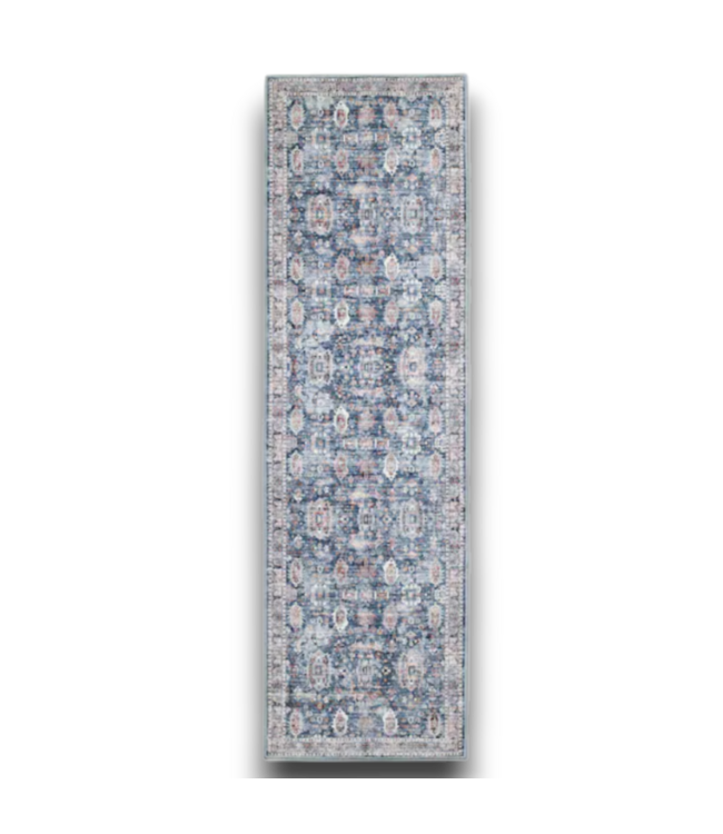 Good condition. Allen + Roth Blue Traditional Loomed Area Rug. Priced at $44 elsewhere. Made of polyester, Rectangular. Indoor. Machine washable. Dimensions: 27"W x 0.31"T x 90"L.