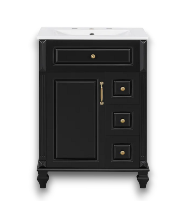 52910 Black Freestanding Bathroom Vanity With Top 24"W