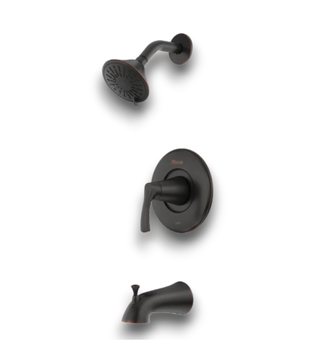 Good condition like new. Pfister Masey Tuscan Multi-Function Showerhead & Bathtub Faucet. Priced at $179 elsewhere. 1-Handle bathtub faucet & valve. Pforever Seal makes leak resistant. Dimensions: (shower): 3.844"W; (spout): 6.063"L. Read more.