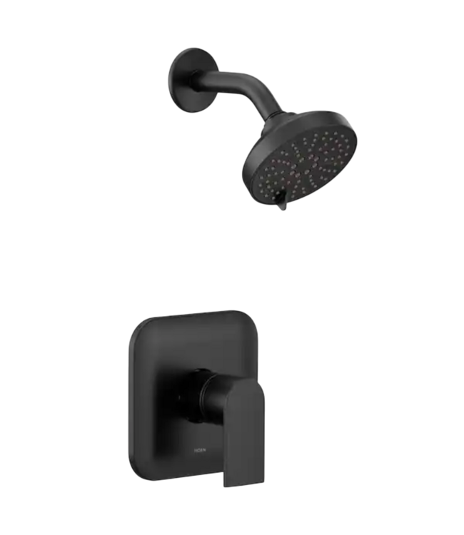 Good condition like new. Moen Genta Matte Black Shower ONLY Trim With Showerhead. Priced at $103 elsewhere. Made from zinc. Corrosion/tarnish resistant. Multi-function shower head. Dimensions: (valve trim): 6.5"W x 6.5"H (1/2" connection).