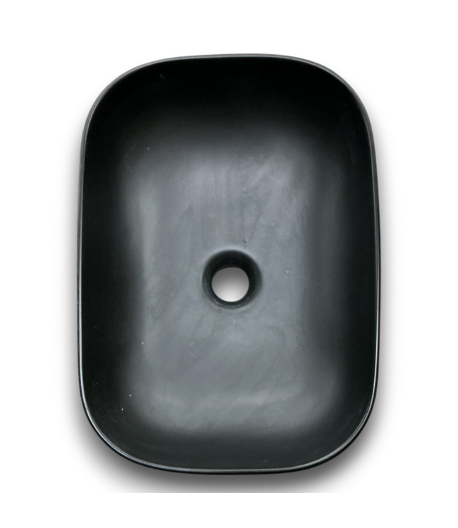Good condition in box. Eridanus Salerno series. Vitreous China. Minimalist. Rounded corners. Matte black color. Rectangular shape. Dimensions: 12.75"W x 18.25"L x 5.25"D.