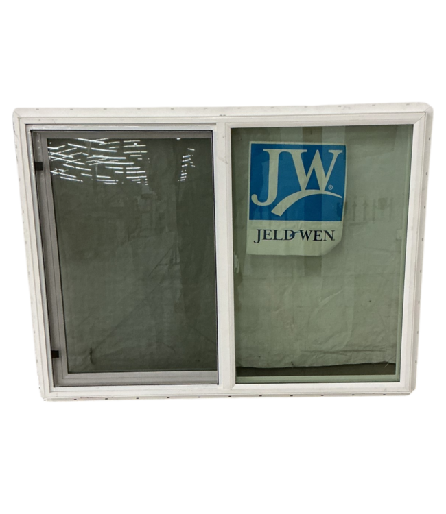 Good condition. Jeld-Wen horizontal slider window. White vinyl. Screen included. Double glazing with Low-E. Dimensions: 47.5"W x 35.5"H.