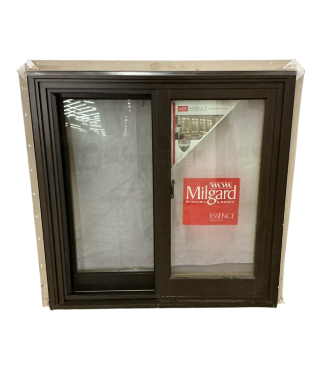 Good condition. Milgard Window. Brown illuminum in the front/outside and Wooden inside/interior. Screen included. Energy performance ratings. Dimensions: 6.25"L x 35.25"W x 35.25"H.