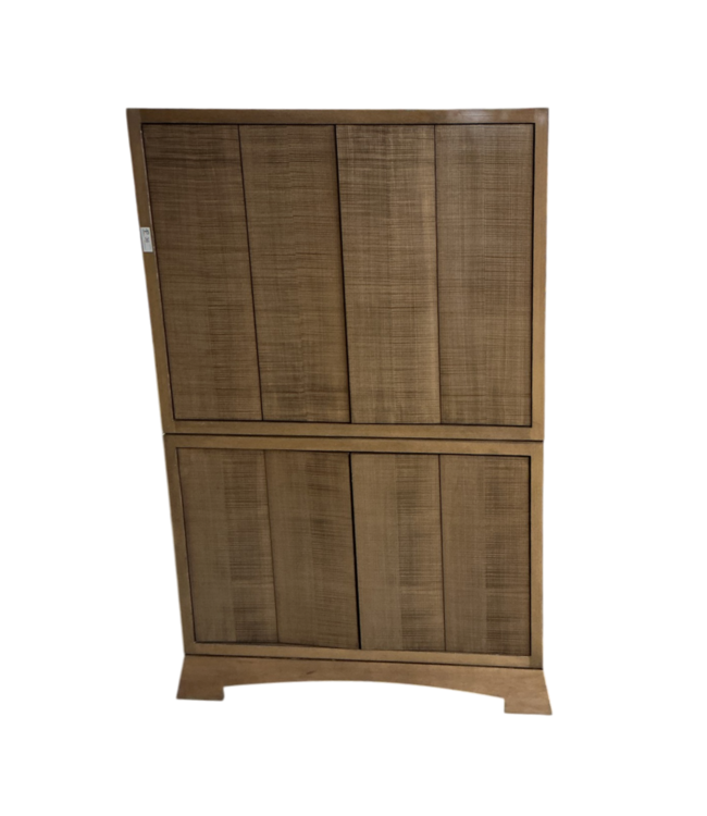 Pre-owned in good condition. One piece is on top of the other and comes off. 4-double doors. 4-adjustable shelves. 4-pullout drawers. Magnetic latch doors. Dimensions: Top:45"W x 21"D x 36"H. Bottom: 45"W x 21"D x 34.375"H.