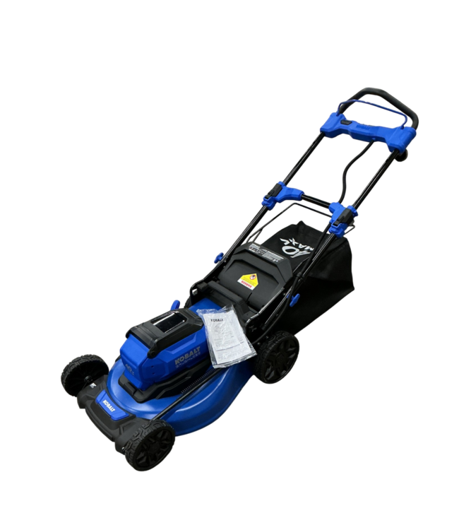 Good condition. Out of box at store. KOBALT Gen4 40-volt, 6 Ah-in Push Lawn Mower Battery Walk Mower. Superior performance with no noise.Push to start. 60 minutes of cut time. 20 inch steel deck. 3 in 1 versatility.