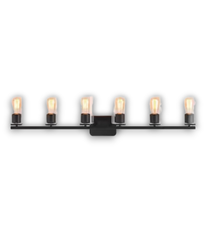 Good condition in box. Kawoti Clemmon collection. Matte black finish color. Clear glass shades, square shaped. Dimmable Hardwired. Damp rated. Mounting hardware included. Mount up/down. Dimensions: 43.25"W x 6"D x 9.5"H.